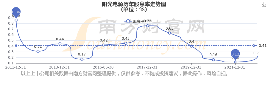 陽(yáng)光電源歷年股息率走勢(shì)如下圖: