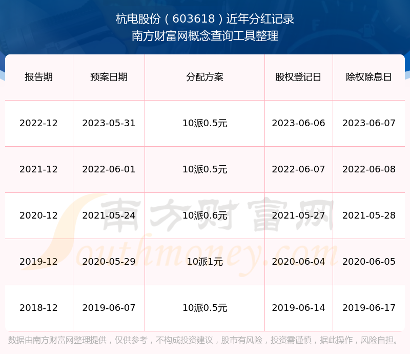 杭電股份最新一次公布的分紅方案:10派0.5元。