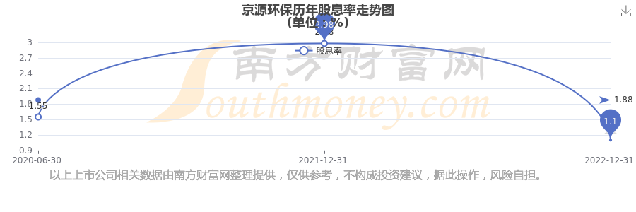 近年京源環(huán)保年度股息率走勢(shì)如下圖:
