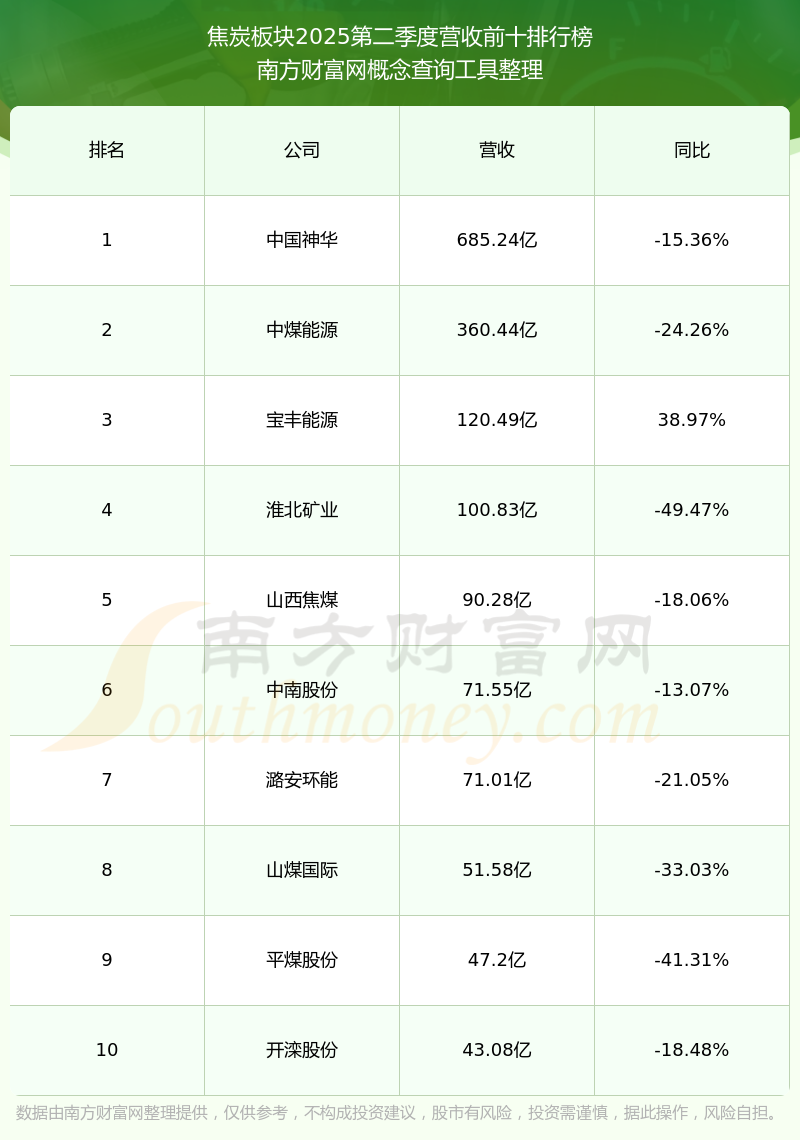 按照南方財富網概念查詢工具統(tǒng)計,該股所屬板塊為焦炭板塊,該板塊共有22只股票,西寧特鋼2025第二季度營收在該板塊中排名為第14名,該板塊2025第二季度營收排名前十的股票如下表:
