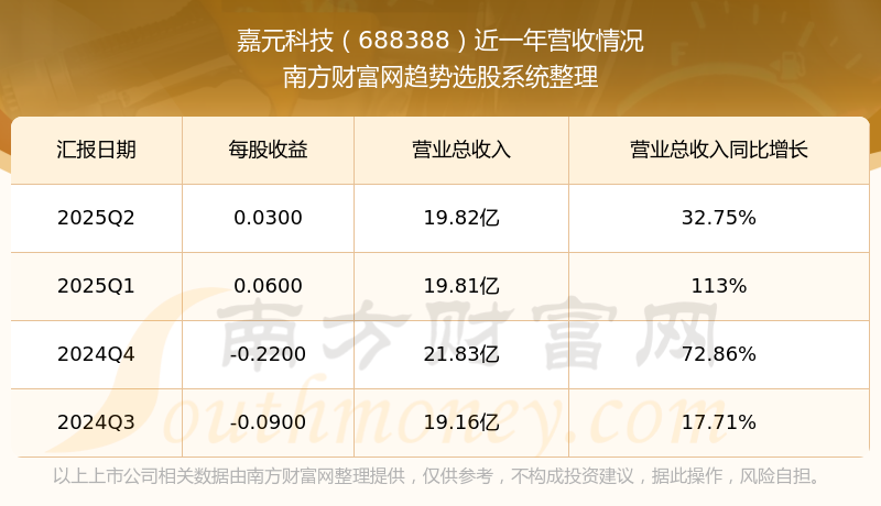 嘉元科技2025年第二季度財(cái)報(bào)顯示,公司主營收入19.82億元,同比32.75%;歸母凈利潤1229.77萬元,同比121.42%;扣非凈利潤202.78萬元,同比102.84%;