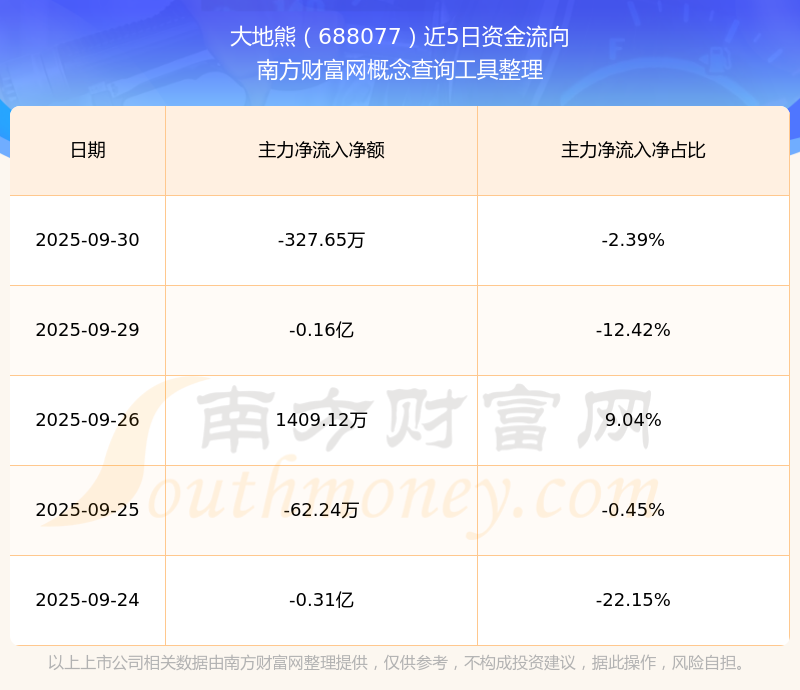 二、大地熊(688077)近期盤面、資金面情況