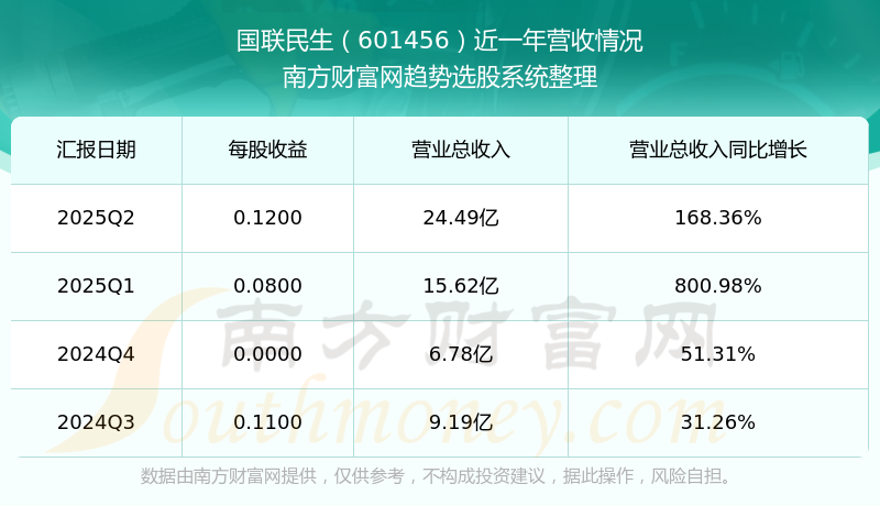 國(guó)聯(lián)民生2025年第二季度顯示,公司主營(yíng)收入24.49億元,同比168.36%;歸母凈利潤(rùn)7.51億元,同比145.08%;扣非凈利潤(rùn)7.43億元,同比144.75%;