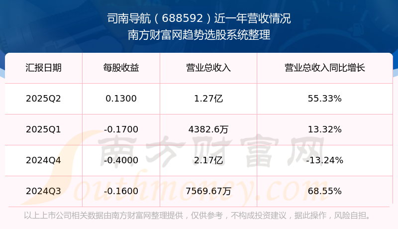 財(cái)報(bào)顯示,2025年第二季度司南導(dǎo)航營(yíng)收1.27億元,同比增長(zhǎng)55.33%,凈利潤(rùn)765.86萬(wàn)元,同比增長(zhǎng)-18.53%。