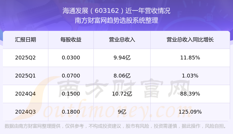 海通發(fā)展股票近一年營收情況如下表: