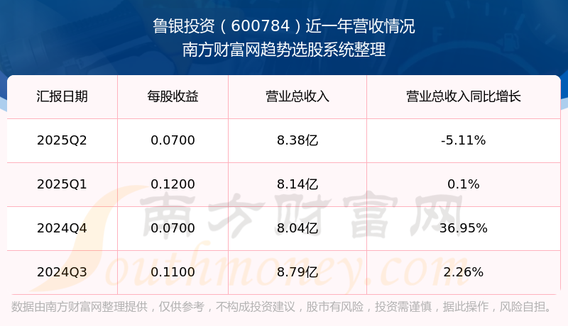 魯銀投資發(fā)布2025年第二季度財報。實現(xiàn)總營收8.38億元,同比增長-5.11%;扣非凈利潤同比增長-52.84%至4607.25萬元。