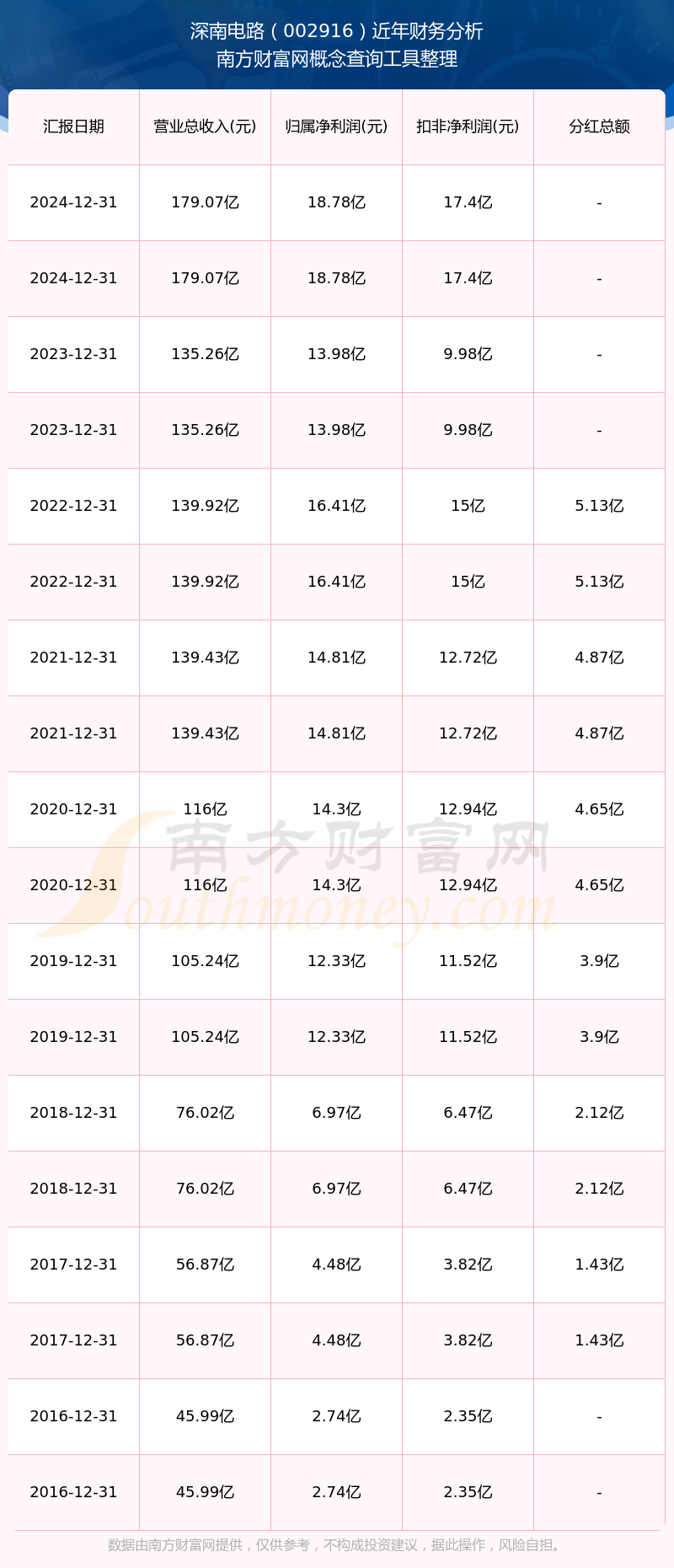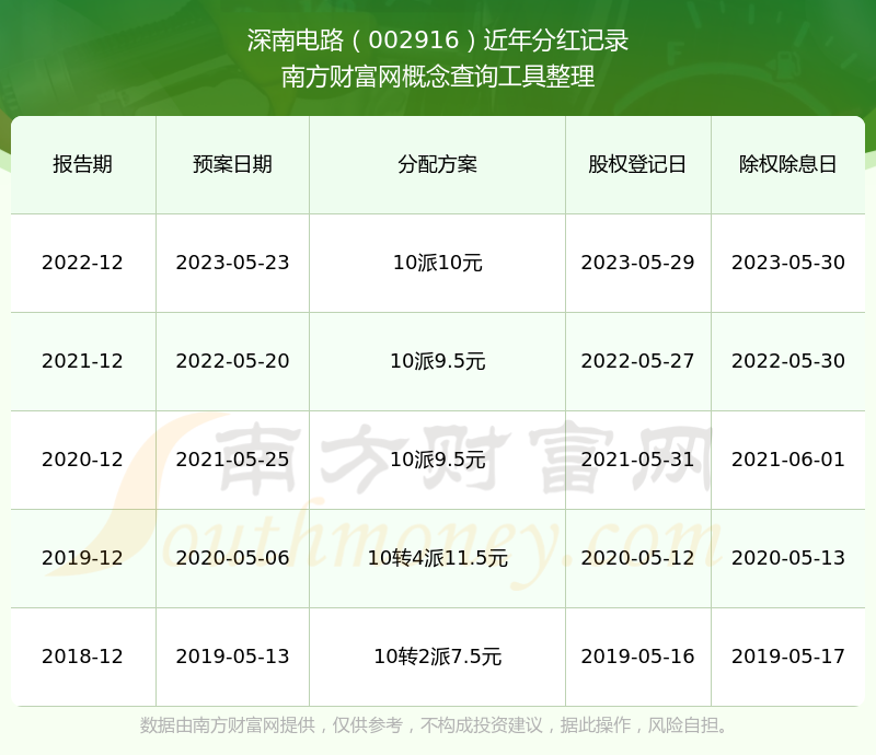 近年深南電路分紅派息情況如下表所示:
