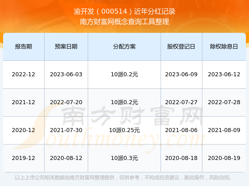 渝開發(fā)最新一次公布的分紅方案:10派0.2元。