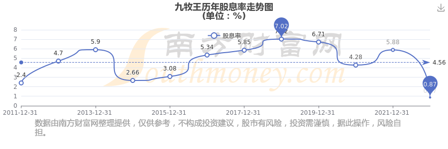 近年九牧王年度股息率走勢如下圖: