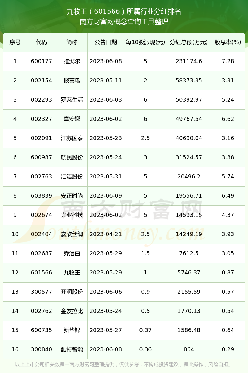 二、九牧王601566行業(yè)分紅排名
