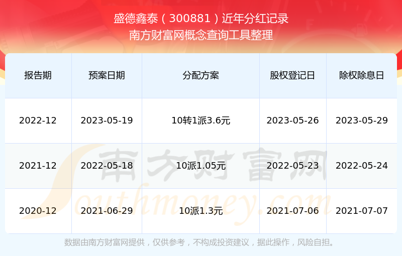 盛德鑫泰最新一次公布的分紅方案為10轉(zhuǎn)1派3.6元。本次權(quán)益分派股權(quán)登記日為2023年5月26日,除權(quán)除息日為2023年5月29日,派息日為2023年5月29日。