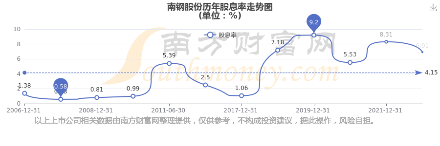 按照南方財富網(wǎng)趨勢選股系統(tǒng)統(tǒng)計,南鋼股份所屬行業(yè)為鋼鐵行業(yè)行業(yè),鋼鐵行業(yè)行業(yè)分紅排名情況如下表:
