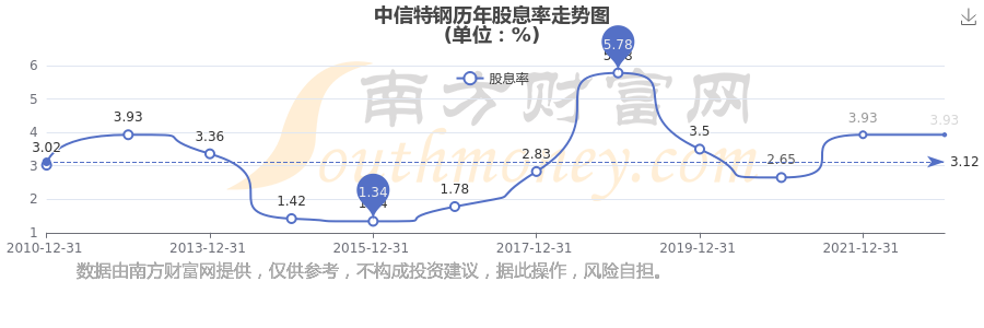 中信特鋼歷年股息率走勢(shì)如下圖: