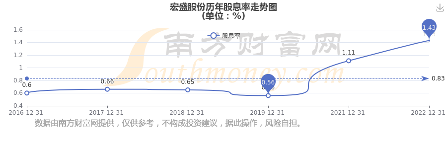 宏盛股份歷年股息率走勢(shì)如下圖: