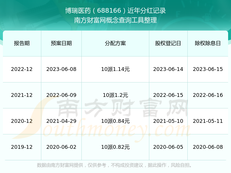 博瑞醫(yī)藥最新一次公布的分紅方案:10派1.14元。
