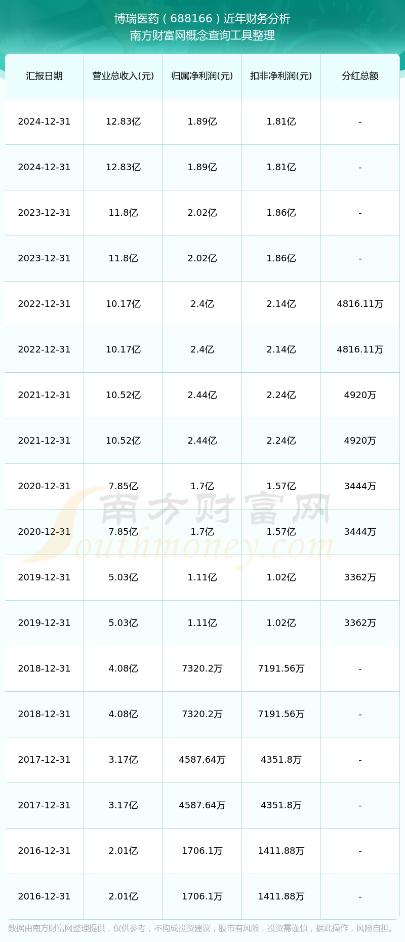 近年博瑞醫(yī)藥分紅派息情況如下表所示: