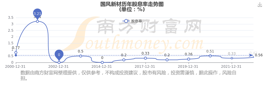 國(guó)風(fēng)新材歷年股息率走勢(shì)如下圖: