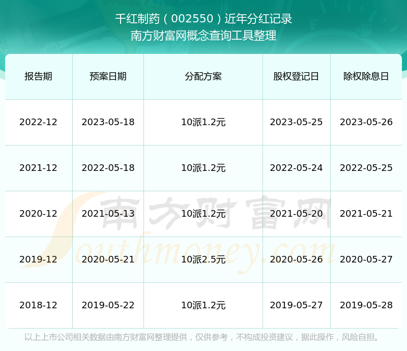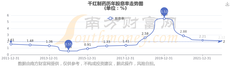 千紅制藥最新一次公布的分紅方案:10派1.2元。