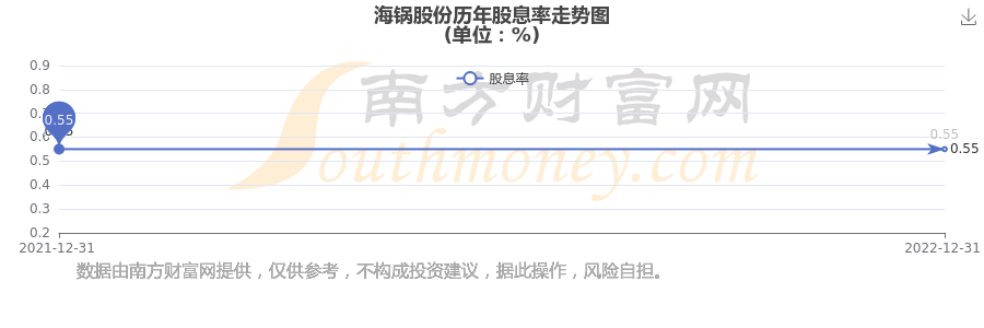 海鍋股份歷年股息率走勢(shì)如下圖: