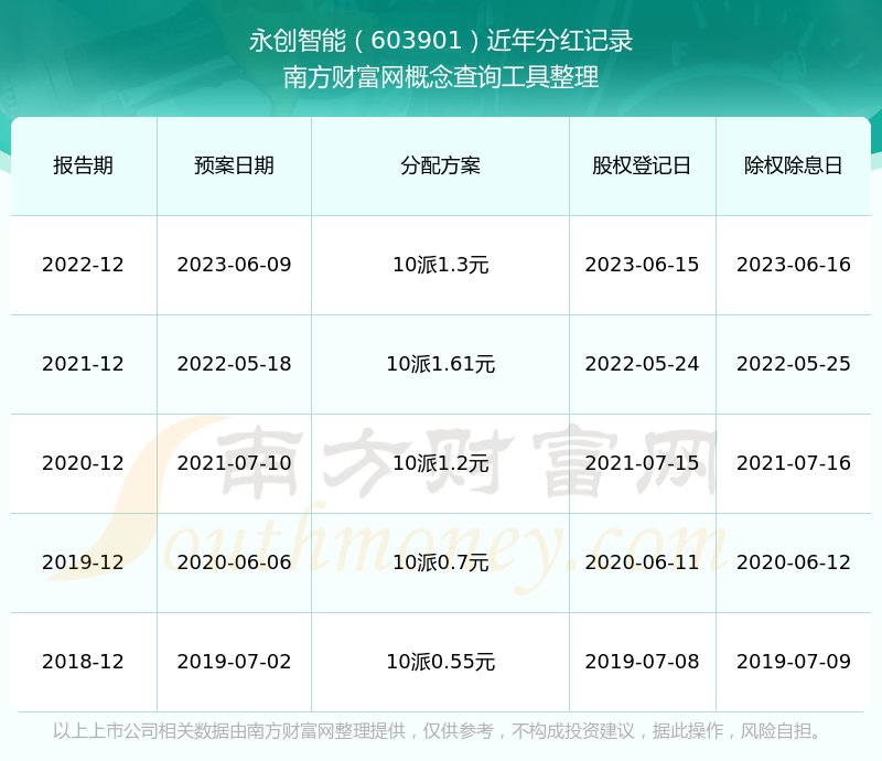 永創(chuàng)智能歷年分紅派息情況如下表所示:
