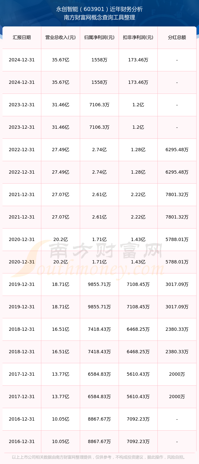 2024年永創(chuàng)智能總營收35.67億,同比增長13.37%;凈利潤1558萬,同比增長-78.08%;銷售毛利率25.3%。