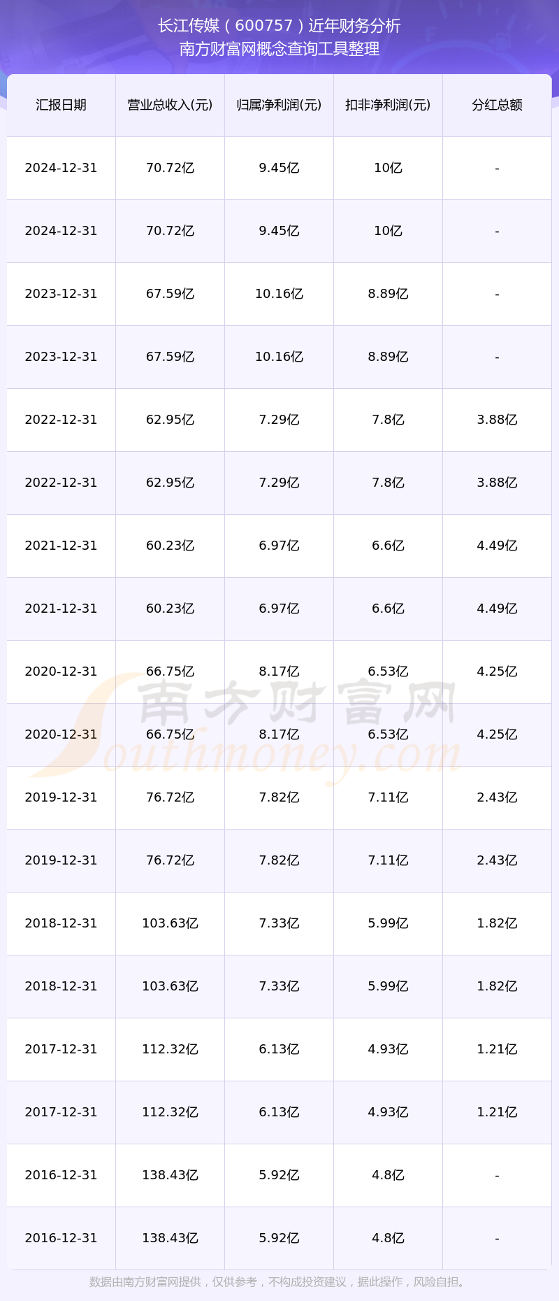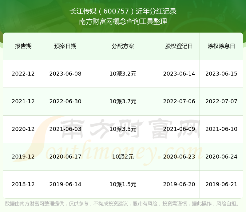 近年長(zhǎng)江傳媒分紅派息情況如下表所示: