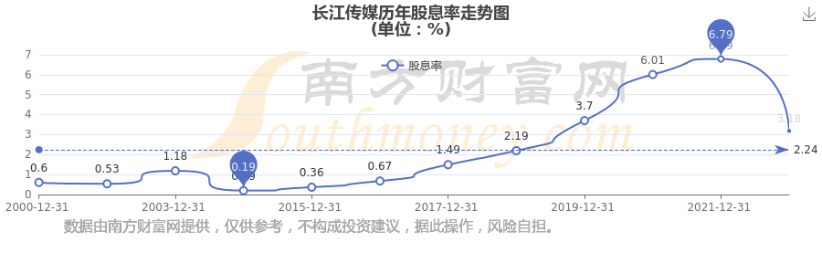 長(zhǎng)江傳媒歷年股息率走勢(shì)如下圖: