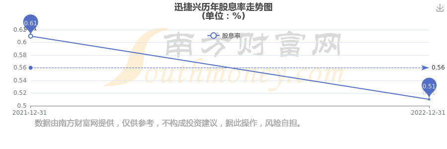 迅捷興歷年股息率走勢(shì)如下圖: