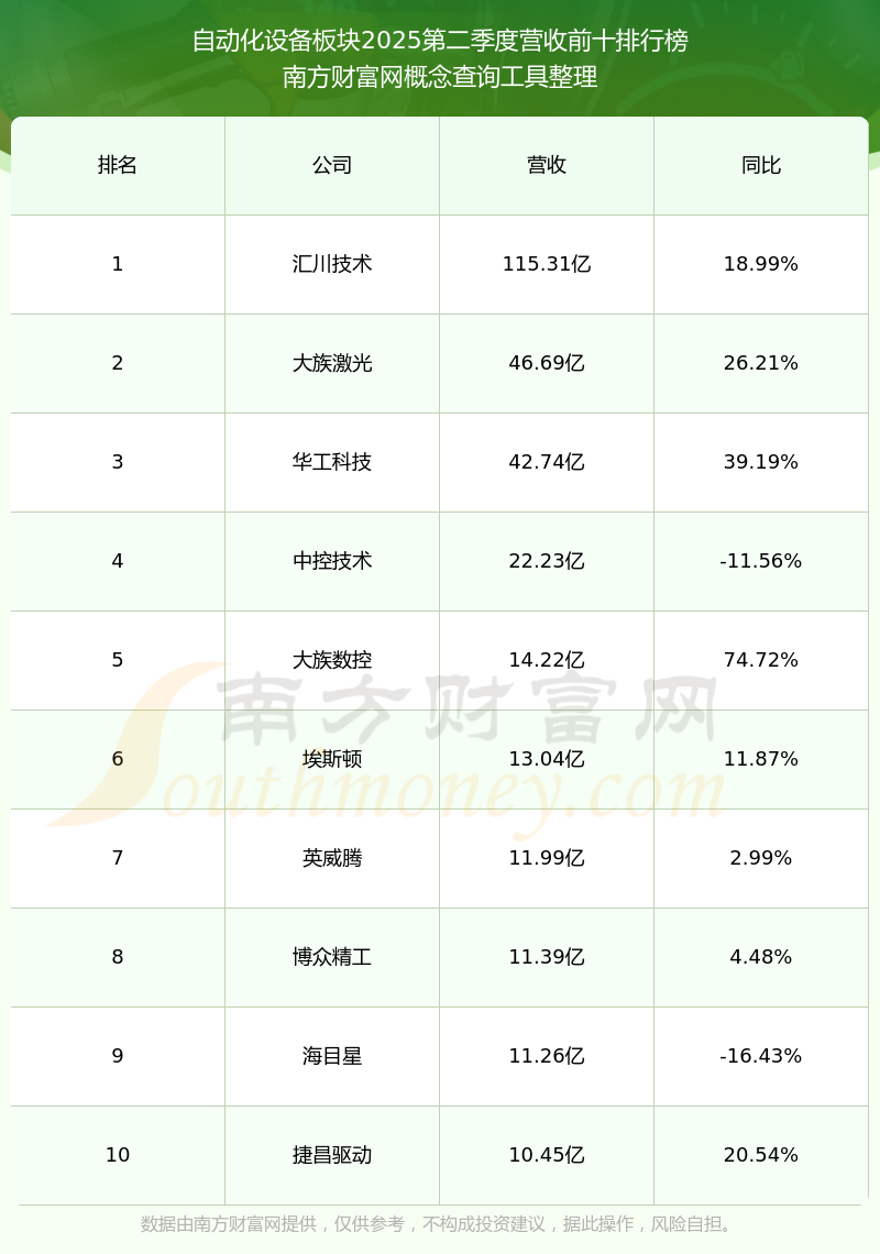 按照南方財富網(wǎng)概念查詢工具統(tǒng)計,該股所屬板塊為自動化設(shè)備板塊,該板塊共有94只股票,賽騰股份2025第二季度營收在該板塊中排名為第21名,該板塊2025第二季度營收排名前十的股票如下表: