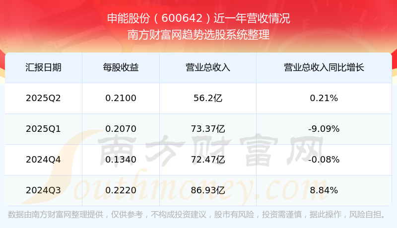 申能股份2025年第二季度財(cái)報(bào)顯示,公司主營(yíng)收入56.2億元,同比0.21%;歸母凈利潤(rùn)10.66億元,同比3.29%;扣非凈利潤(rùn)10.14億元,同比6.37%。