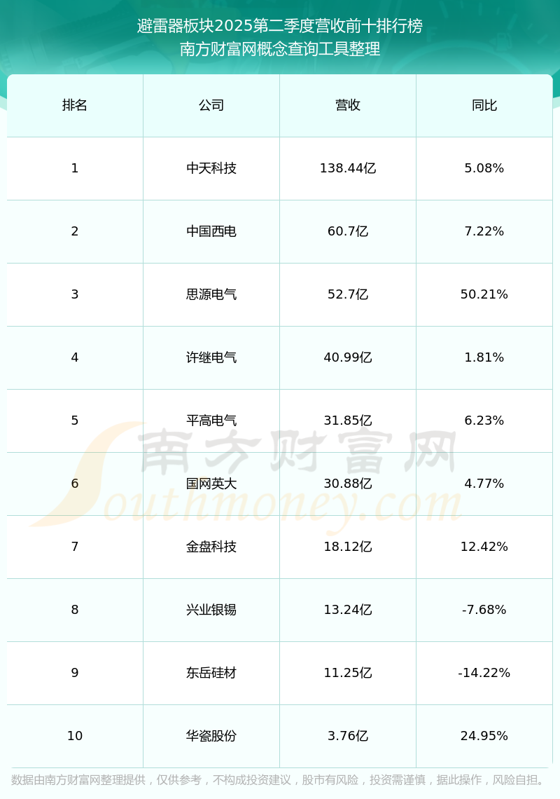 按照南方財富網(wǎng)概念查詢工具統(tǒng)計,該股所屬板塊為避雷器板塊,該板塊共有18只股票,金冠電氣2025第二季度營收在該板塊中排名為第14名,該板塊2025第二季度營收排名前十的股票如下表: