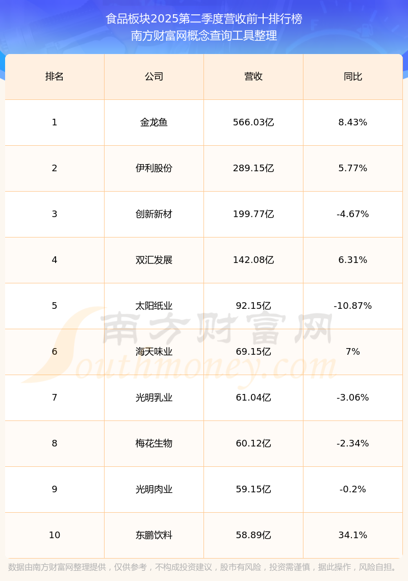 按照南方財富網(wǎng)概念查詢工具統(tǒng)計,該股所屬板塊為食品板塊,該板塊共有121只股票,絕味食品2025第二季度營收在該板塊中排名為第31名,該板塊2025第二季度營收排名前十的股票如下表:
