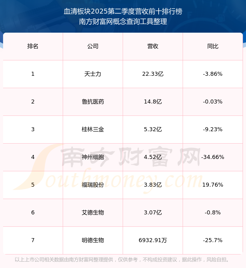 按照南方財富網(wǎng)概念查詢工具統(tǒng)計,該股所屬板塊為血清板塊,該板塊共有7只股票,賽倫生物2025第二季度營收在該板塊中排名為第7名,該板塊2025第二季度營收排名前十的股票如下表: