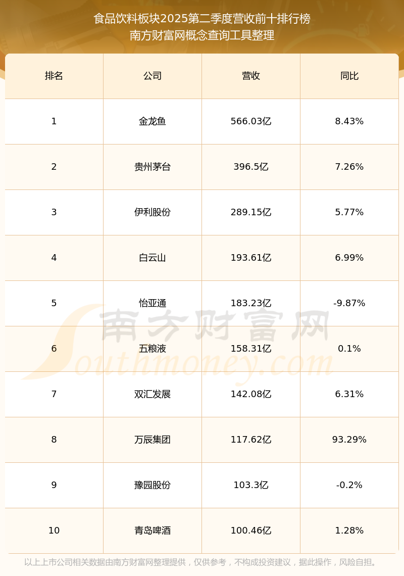 按照南方財(cái)富網(wǎng)概念查詢工具統(tǒng)計(jì),該股所屬板塊為食品飲料板塊,該板塊共有251只股票,廣州酒家2025第二季度營收在該板塊中排名為第80名,該板塊2025第二季度營收排名前十的股票如下表: