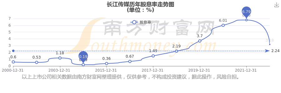 近年長(zhǎng)江傳媒年度股息率走勢(shì)如下圖: