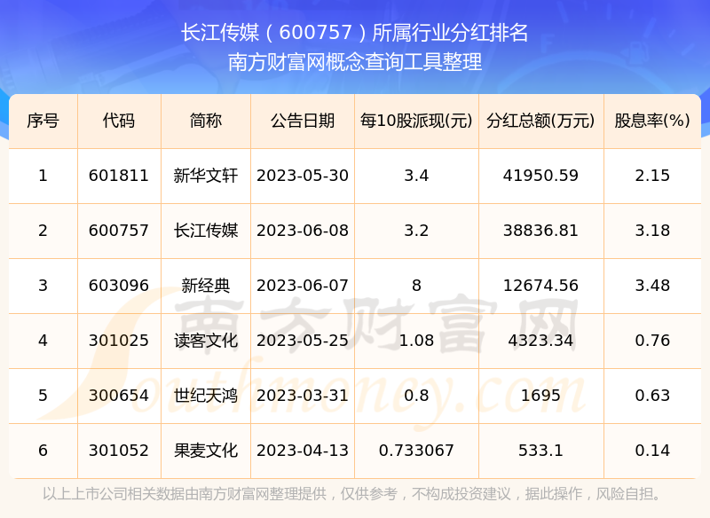 二、長(zhǎng)江傳媒600757行業(yè)分紅排名