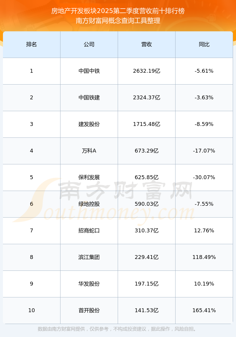 按照南方財(cái)富網(wǎng)概念查詢工具統(tǒng)計(jì),該股所屬板塊為房地產(chǎn)開(kāi)發(fā)板塊,該板塊共有143只股票,格力地產(chǎn)2025第二季度營(yíng)收在該板塊中排名為第59名,該板塊2025第二季度營(yíng)收排名前十的股票如下表: