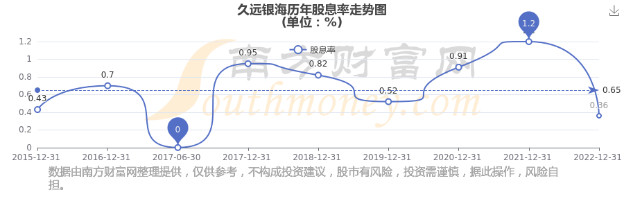近年久遠(yuǎn)銀海年度股息率走勢如下圖: