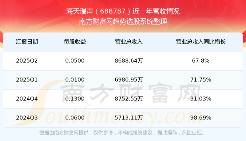 一、海天瑞聲(688787)股票營(yíng)收情況