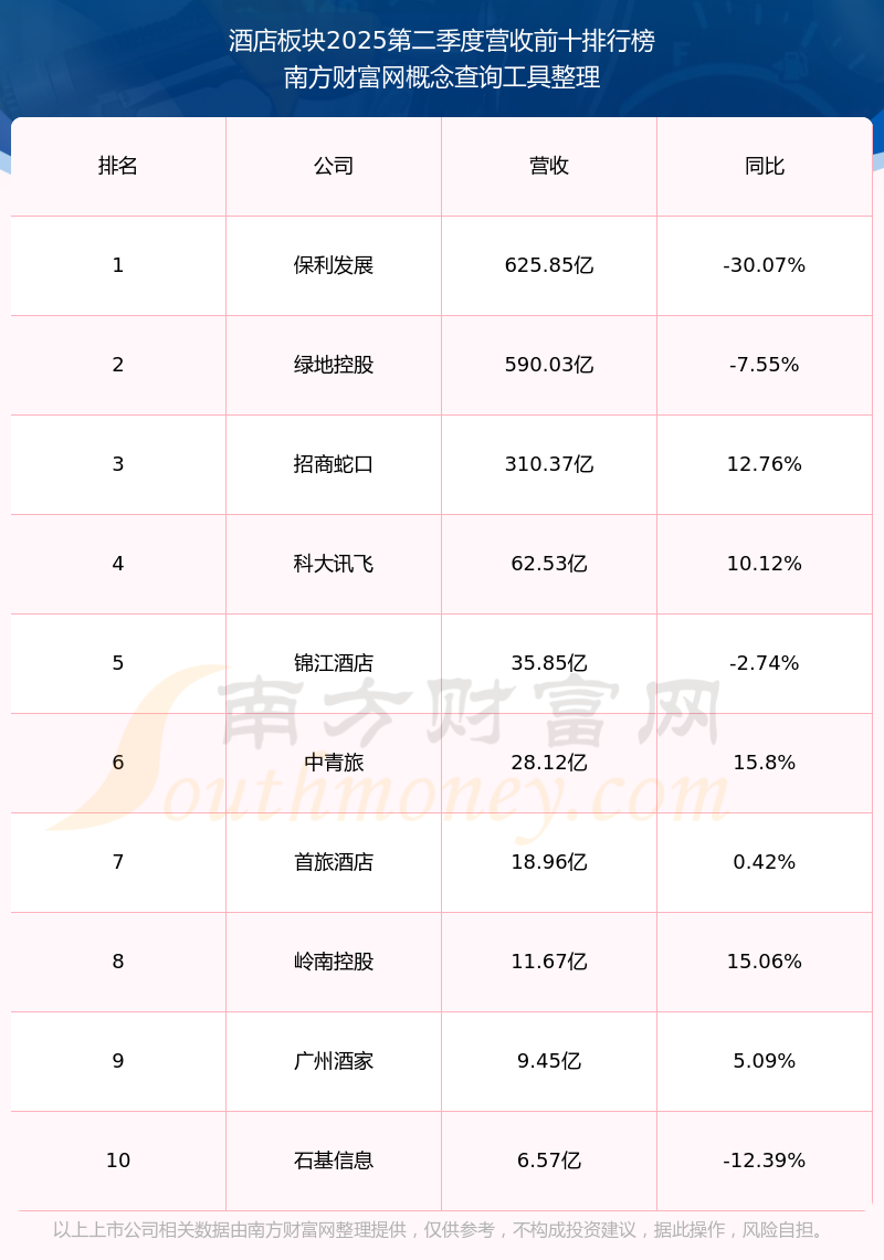 按照南方財(cái)富網(wǎng)概念查詢工具統(tǒng)計(jì),該股所屬板塊為酒店板塊,該板塊共有28只股票,首旅酒店2025第二季度營(yíng)收在該板塊中排名為第7名,該板塊2025第二季度營(yíng)收排名前十的股票如下表:
