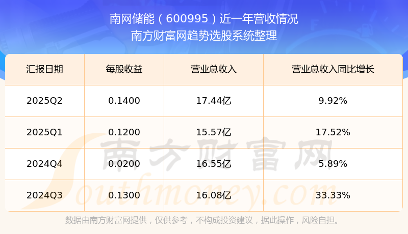 南網(wǎng)儲能股票近一年營收情況如下表: