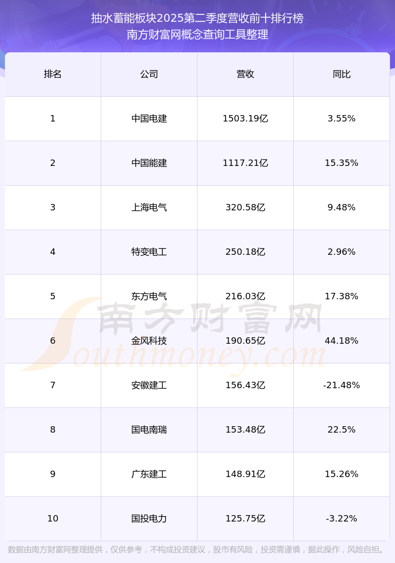按照南方財富網(wǎng)概念查詢工具統(tǒng)計,該股所屬板塊為抽水蓄能板塊,該板塊共有64只股票,南網(wǎng)儲能2025第二季度營收在該板塊中排名為第33名,該板塊2025第二季度營收排名前十的股票如下表: