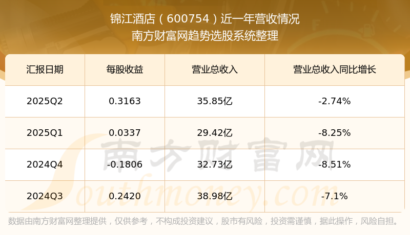 于2025年第二季度,錦江酒店披露了其業(yè)績表現(xiàn),其中主營業(yè)務(wù)收入35.85億元,相較于去年同期-2.74%。此外,公司歸屬于母公司的凈利潤為3.35億元,同比增長了-49.12%。在扣除所有非經(jīng)常性損益后,凈利潤3.82億元,同比增長17.11%。