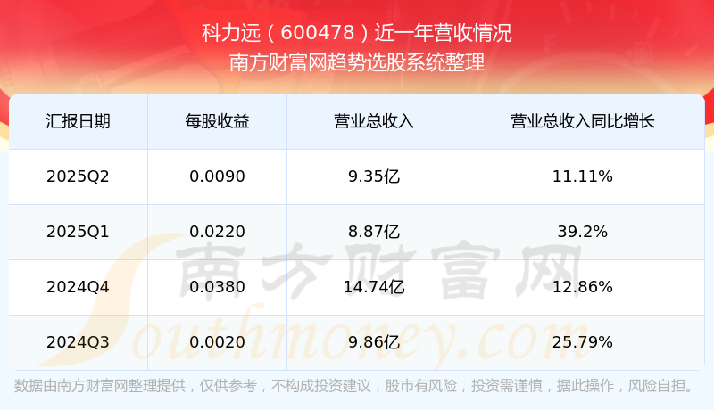 財(cái)報顯示,2025年第二季度科力遠(yuǎn)營收9.35億元,同比增長11.11%,凈利潤1427.08萬元,同比增長189.7%。