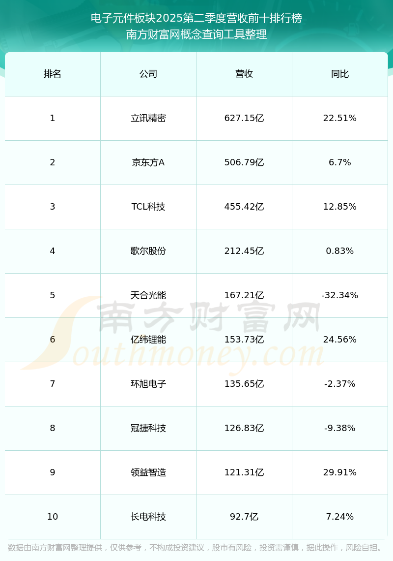 按照南方財(cái)富網(wǎng)概念查詢工具統(tǒng)計(jì),該股所屬板塊為電子元件板塊,該板塊共有367只股票,科力遠(yuǎn)2025第二季度營收在該板塊中排名為第367名,該板塊2025第二季度營收排名前十的股票如下表: