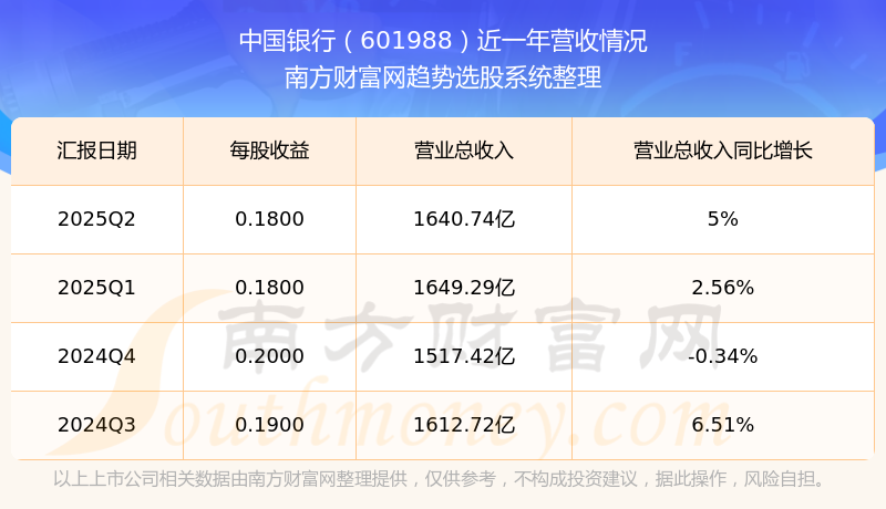 中國銀行(601988)披露2025年第二季度報(bào)告,報(bào)告期實(shí)現(xiàn)營收1640.74億元,同比5%;歸母凈利潤632.27億元,同比0.98%;扣非凈利潤630億元,同比1.02%。