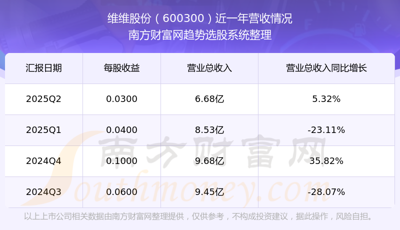 一、維維股份(600300)股票營收情況