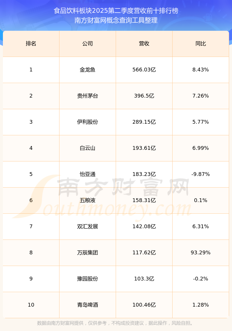 按照南方財富網(wǎng)概念查詢工具統(tǒng)計,該股所屬板塊為食品飲料板塊,該板塊共有251只股票,維維股份2025第二季度營收在該板塊中排名為第103名,該板塊2025第二季度營收排名前十的股票如下表: