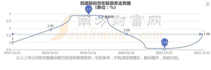 近年創(chuàng)源股份年度股息率走勢如下圖: