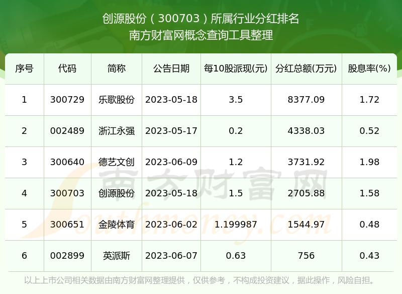 二、創(chuàng)源股份300703行業(yè)分紅排名